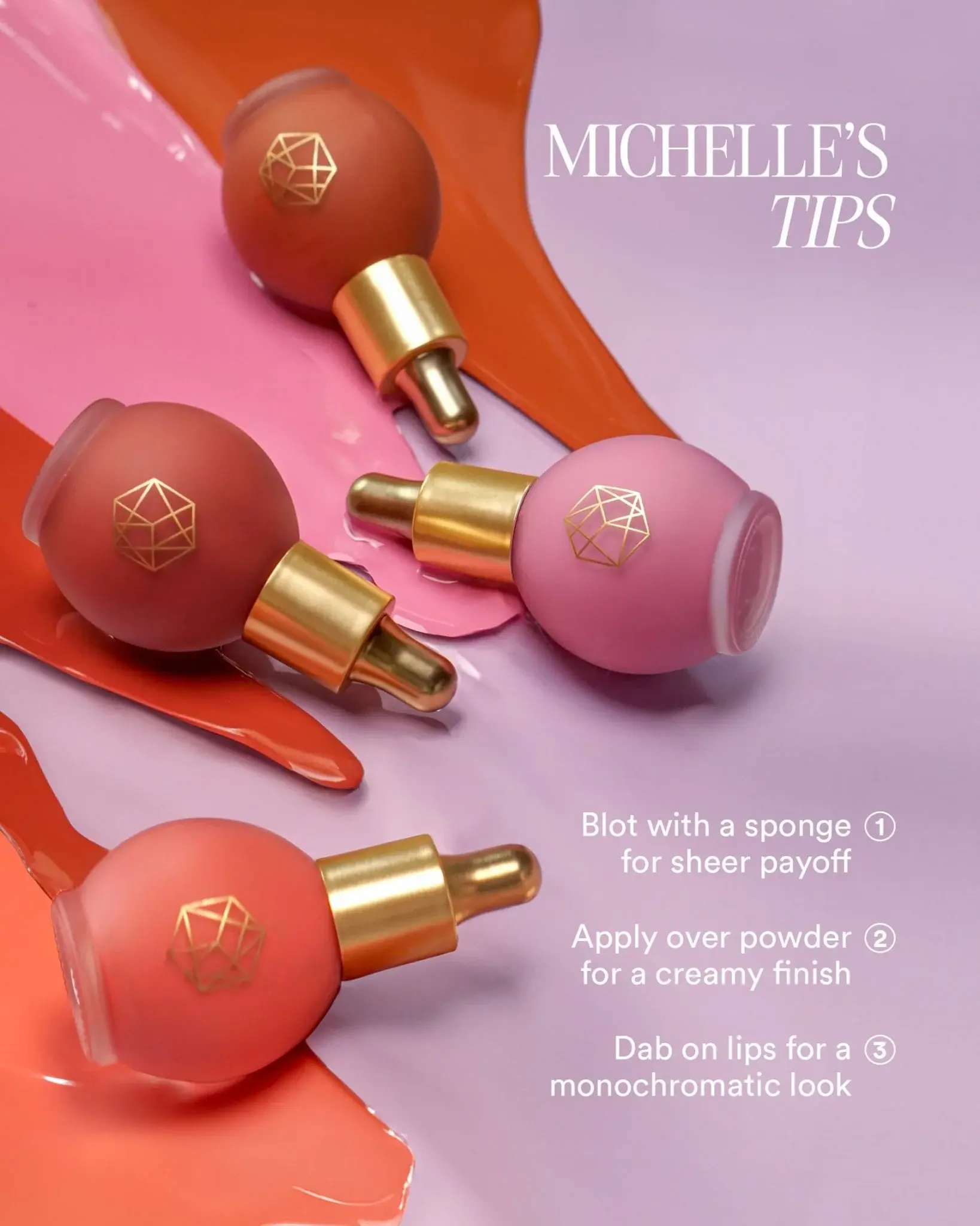 Combination/oily skins: prep bare skin or base makeup for application by blotting cheeks with a tissue or an oil absorbing sheet before applying