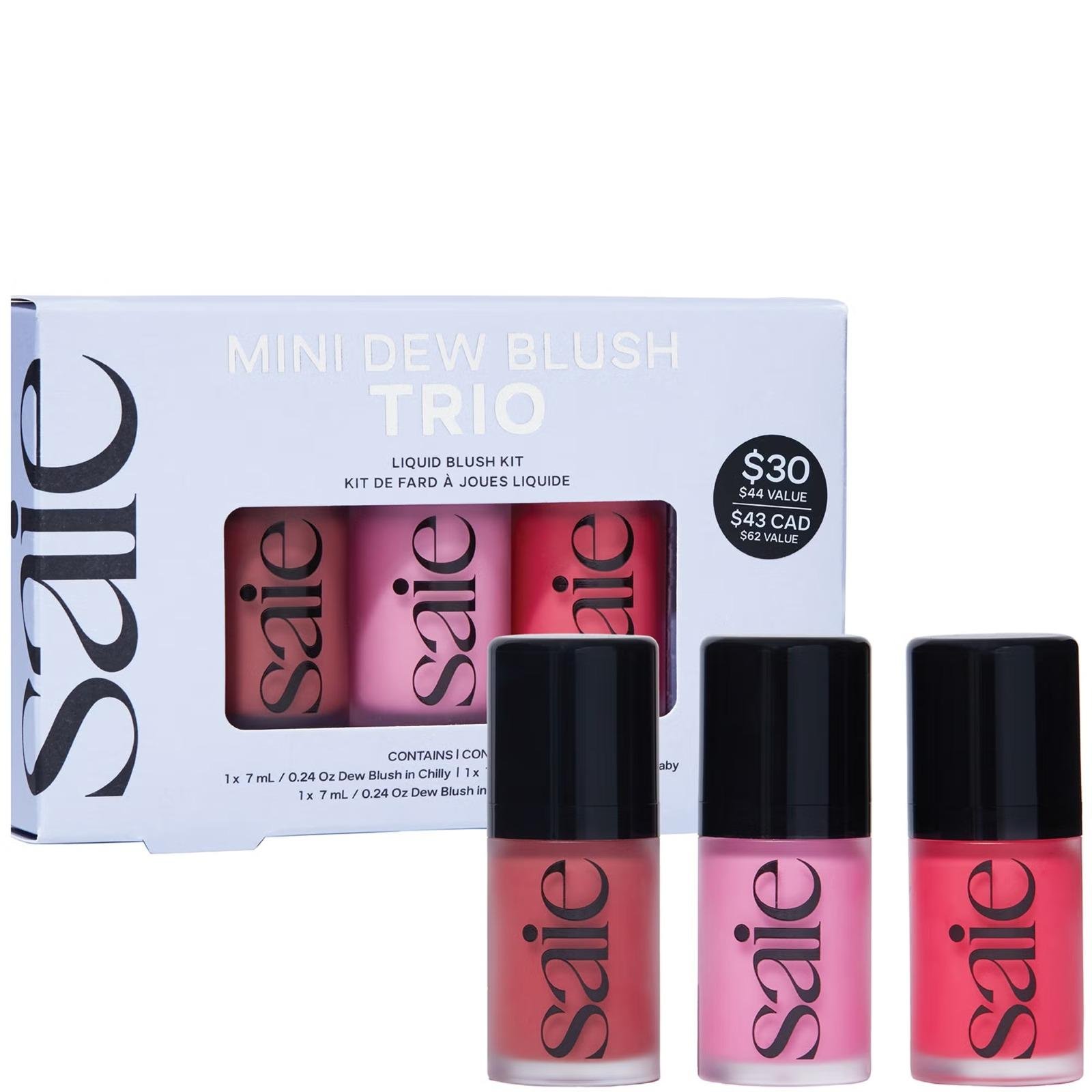 Better blush, multiplied! Introducing Saie's Mini Dew Blush Trio, featuring the award-winning cream-blush in not just one, not two, but *three* different luminous shades.